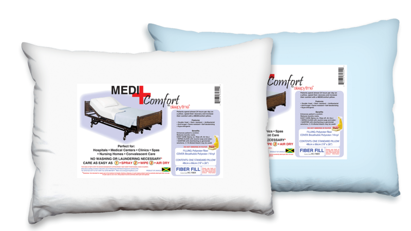 Our Medi- Comfort line includes pillows and bed linen that we have aimed specifically at the medical, and hospital sector. These pillows are made with an easy to care and clean fabric, that can just be wiped off, to ensure hygiene. The pillows are made with a Breathable Vinyl cover, that is available in both white, and medical blue.